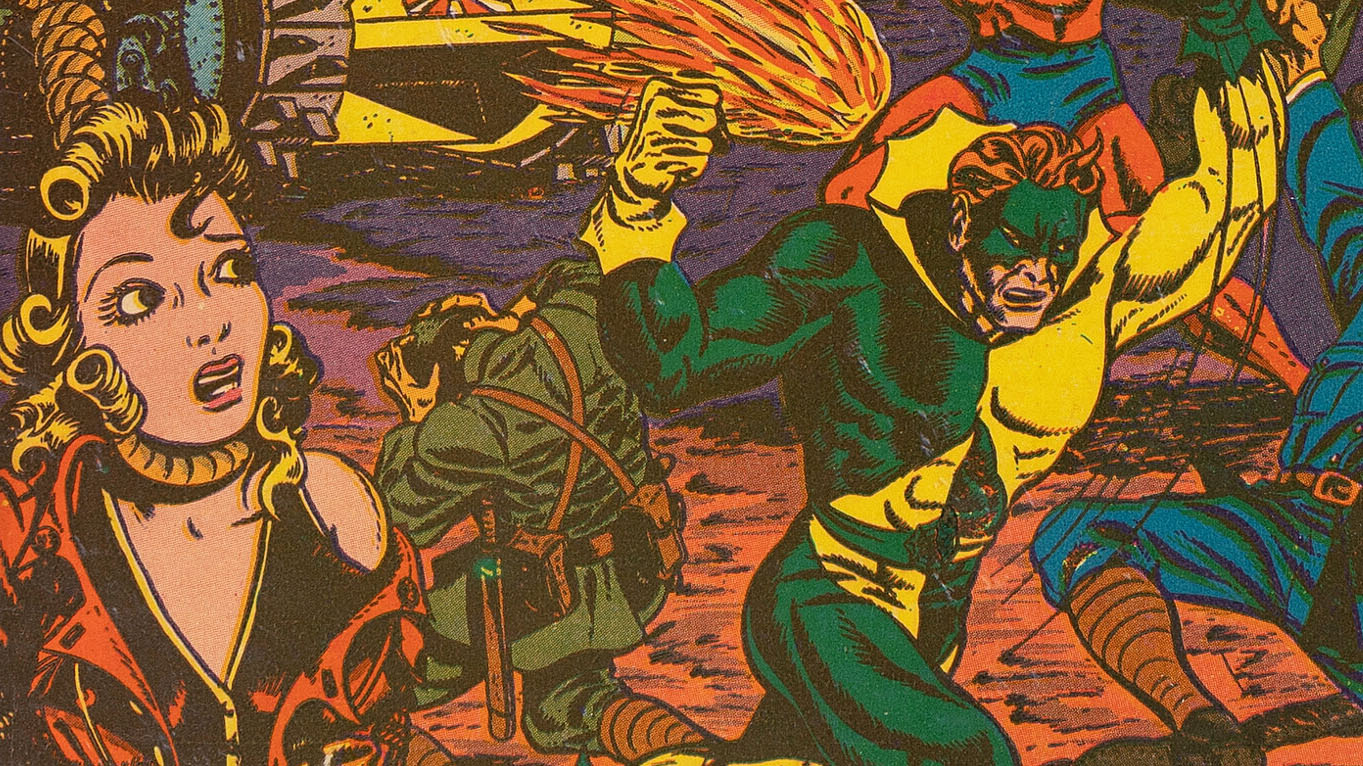Zip Comics #34 has stories that reflects three different theaters of operation of World War II, plus a backup story by 16 year old Joe Kubert.